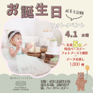衣裳やヘアメイクなしの特別イベントです(通常のバースデープランもございますのでお気軽にお問い合わせください。)