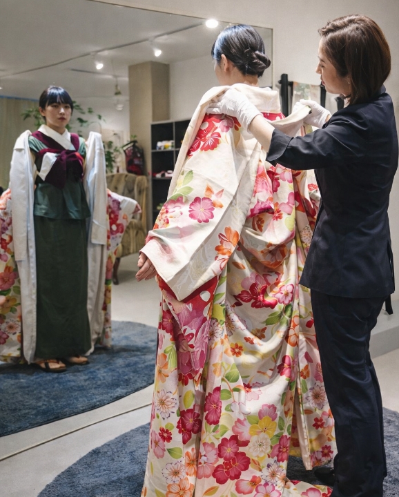 専属のコーディネーターがご希望をお伺いし、振袖から帯や小物までトータルコーディネートいたします。
